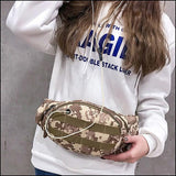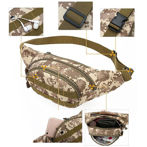 Fixe ou range tes accessoires primordiaux dans ce Sac Banane Molle au design militaire. Le camouflage digital te dissimule en terre aride à la perfection !