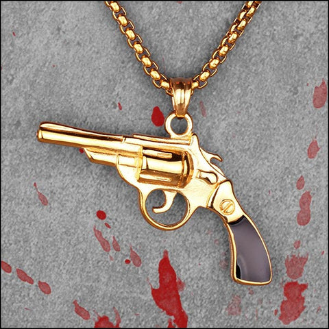 Équipe-toi de ce magnifique Collier Revolver à l'aspect poignant. Le bijou à la couleur dorée invoque une ambiance à la fois explosive et fascinante.