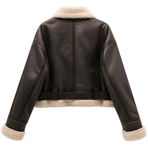 Ajoute une dimension luxueuse à ta garde-robe féminine grâce à ce Blouson Aviateur Marron pour Femme. Une veste qui te donne une silhouette élégante !