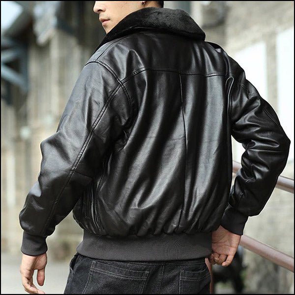Ce Blouson Aviateur Noir en Cuir pour Homme sort tout droit du cockpit des pilotes de bombardier d'antan. Un haut arborant une élégance à l'état pur !