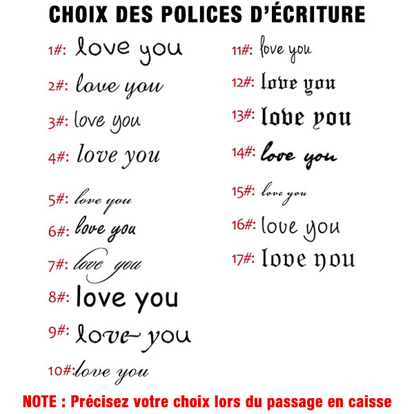 - Consigne : Précisez la police d'écriture (cf image 4) ainsi que la couleur de la gravure (argent ou noir) sur la page panier