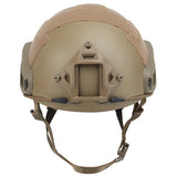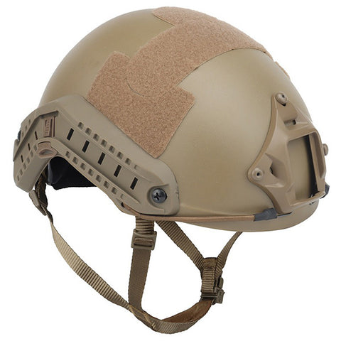 - Caractéristiques : Support métallique à l'avant du casque pour lunettes de vision nocturne, rails tactiques latéraux pour accessoires, velcro, coussinets anti-impact
