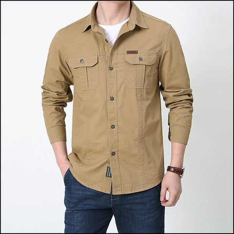 Ose l'originalité en habillant cette Chemise Militaire Kaki pour Homme. Une couleur de combattant s'associant facilement avec un jean ou encore un short !