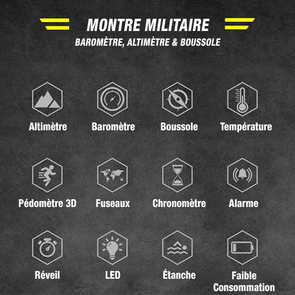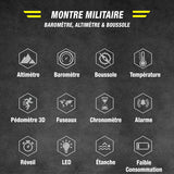 Mesure tes performances à l'aide de notre Montre Homme Sport Militaire avec Baromètre et Boussole. Un accessoire aux paramètres adaptés aux activités.