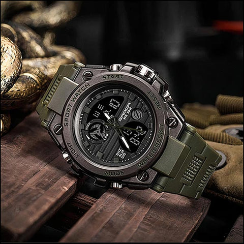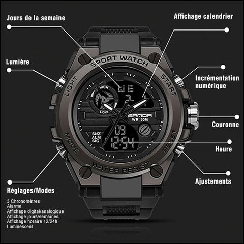 La Montre Homme Style Militaire est une partenaire puissante et ultra efficace. Son cadran avec double affichage te permet une lecture du temps rapide.