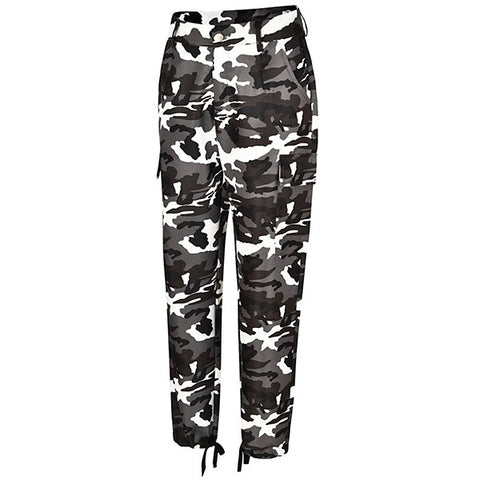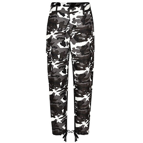 Fait forte impression avec notre Pantalon Cargo Imprimé Camouflage pour Femme. Une belle coupe volumineuse qui forge un style saisissant à la militaire.