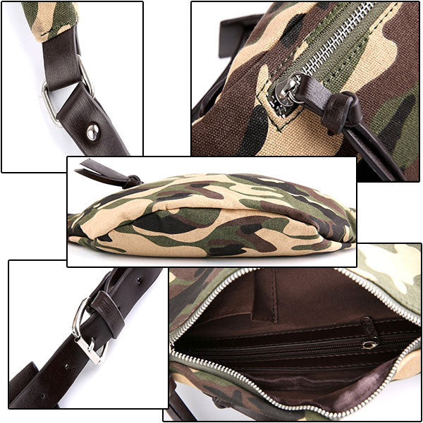 Témoigne ton affection envers notre Sac Banane pour Femme en Tissu en le portant avec style. Son visuel s'exprime avec un camouflage militaire original !