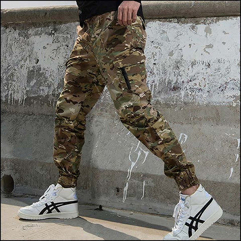 - Poches : Poches cargo à rabat avec zip sur les jambes, poches latérales, poches arrière (discret et pratique)