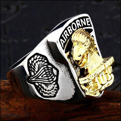 Cette Bague Militaire Parachutiste représente la célèbre division aéroportée des "Aigles hurlants" qui se distinguera lors du débarquement en Normandie.