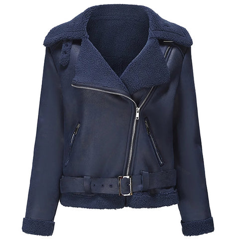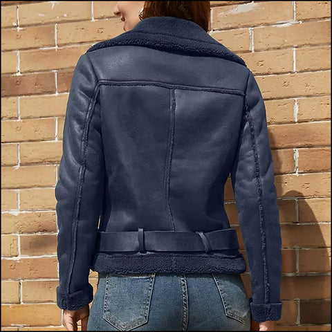 Ose la sophistication avec ce Blouson Aviateur Bleu Marine Femme en similicuir, où la ceinture cintrée et le col retroussé insufflent une allure audacieuse et raffinée. Sa doublure épaisse et sa coupe audacieuse te gardent au chaud tout en te propulsant dans un univers de style urbain et intemporel. Parfait pour l’hiver, il devient ton allié pour chaque moment où tu veux allier confort et caractère.