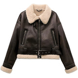 Ajoute une dimension luxueuse à ta garde-robe féminine grâce à ce Blouson Aviateur Marron pour Femme. Une veste qui te donne une silhouette élégante !