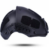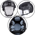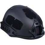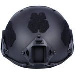 - Caractéristiques : Support métallique à l'avant du casque pour lunettes de vision nocturne, rails tactiques latéraux pour accessoires, velcro, neuf coussinets anti-impact