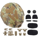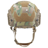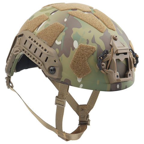 - Caractéristiques : Support métallique à l'avant du casque pour lunettes de vision nocturne, rails tactiques latéraux pour accessoires, velcro, coussinets anti-impact