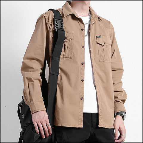 - Une chemise militaire beige, élégante et classe, qui se traduit par un esprit conquérant et un confort audacieux