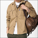 Notre Chemise Militaire Kaki est l'ajout parfait à toute garde-robe masculine qui se respecte. Un vêtement idéal à porter lors des journées décontractées !