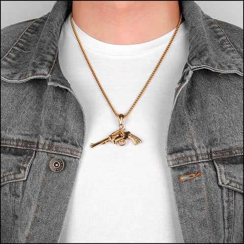 Honorable et singulier, ce Collier Avec Pendentif Revolver est une pièce de joaillerie d'exception. Le bijou te fait voyager à l'époque des cow-boys.
