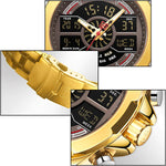 La Montre Aviateur Affichage Digital est un outil polyvalent muni d'un écran numérique et d'aiguilles. Un design créatif inspiré du moteur d'un avion !