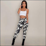 Le Pantalon Camouflage Blanc Femme est une pièce charismatique avec ses motifs. Revêtit ce vêtement autoritaire qui s'apparente au style militaire.