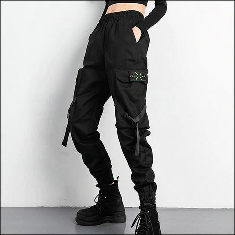 - Pantalon cargo noir moderne pour un look urbain fonctionnel et décontracté