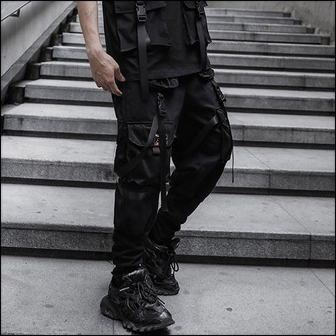 Adopte le style techwear en revêtant notre Pantalon Cargo Tactique munie de Poches à la couleur Noir. Un confort absolu avec des compartiments à foison !