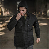 • Capuche tactique doublée (coupe-vent robuste)