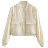 La Veste Aviateur Femme Beige, douce comme un océan, évoque les déserts baignés par le soleil avec sa teinte sable lumineuse.